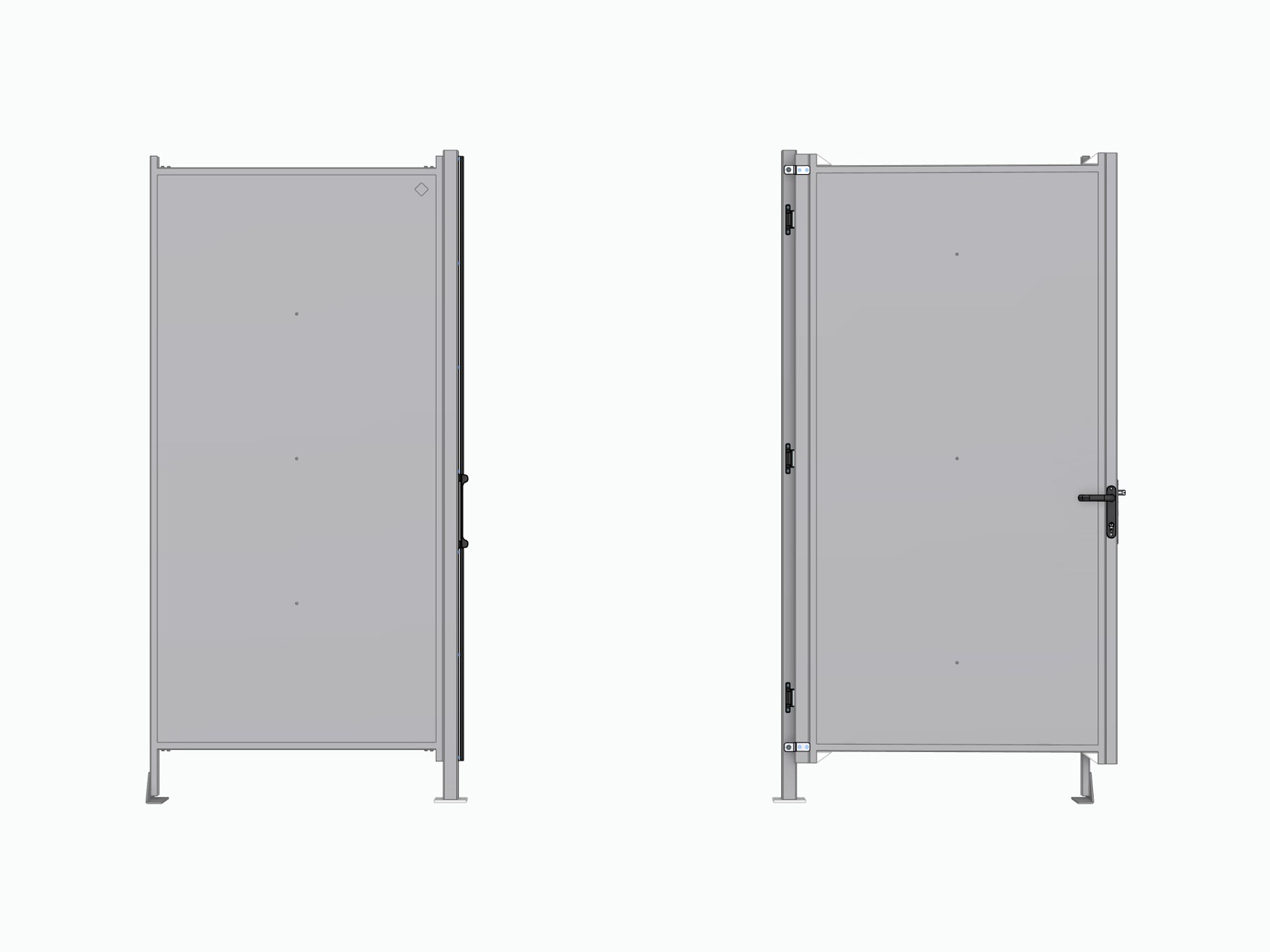 The Sonic swing door is now supplied as standard with a door handle, lock case, strike plate and two uprights. The lock case is neatly integrated into the panel, while the strike plate is mounted in the supplied upright. This results in a clean and durable finish without surface-mounted components.